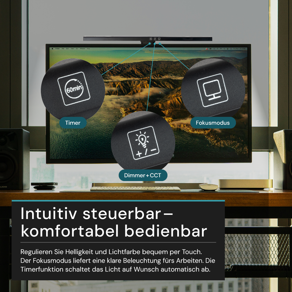 - Platzsparend & praktisch: Die Monitorlampe wird direkt am Bildschirm befestigt, spart wertvollen Platz auf dem Schreibtisch und sorgt für optimale Ausleuchtung genau dort, wo Sie sie brauchen.