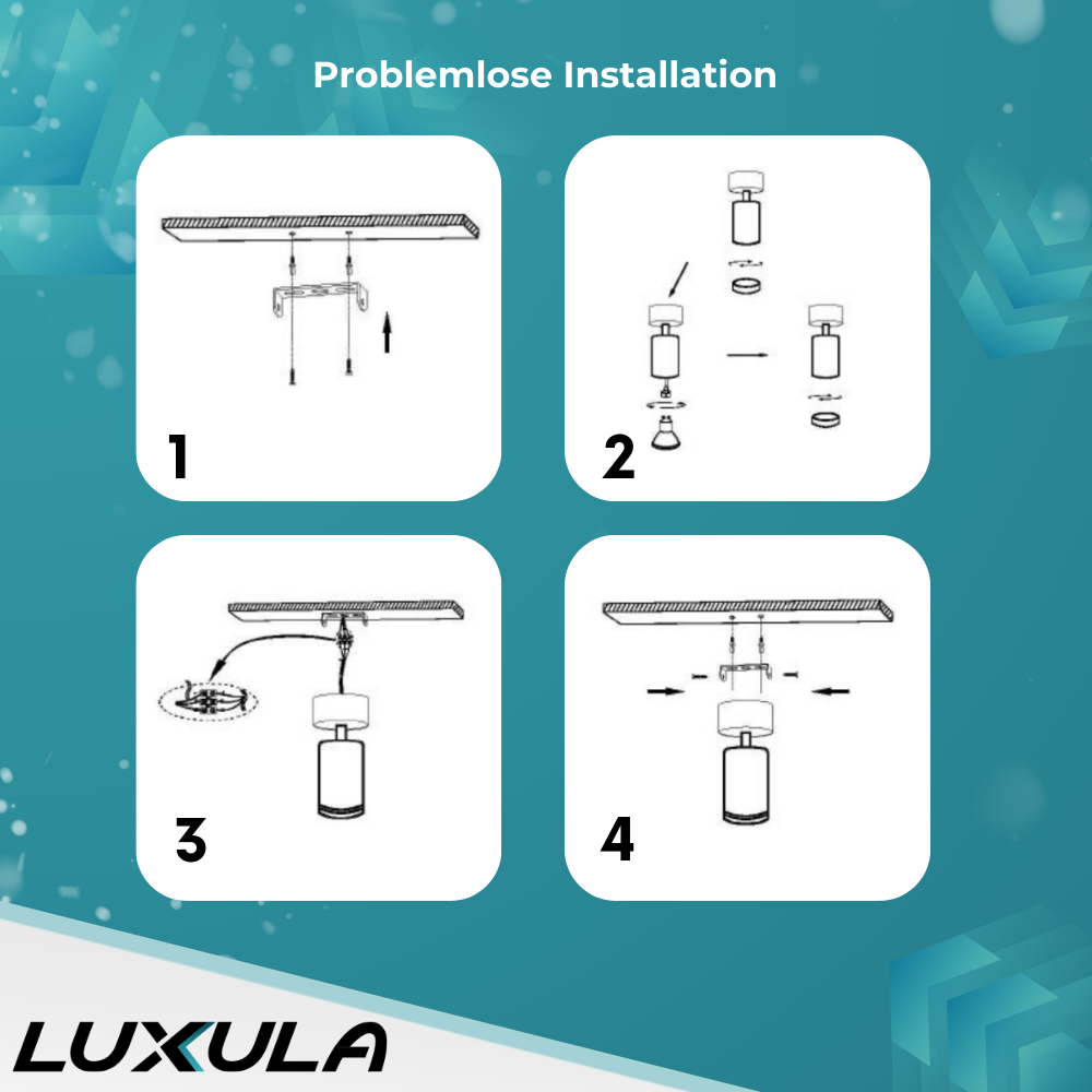 Die schwenkbare Variante des LED-Aufbauspots von LUXULA kombiniert modernes Design mit praktischer Funktionalität. Diese 1-flammige Leuchte ist in zwei edlen Farbvarianten erhältlich: Weiß mit schwarzem Akzent und Schwarz mit goldenem Akzent. Perfekt geeignet für Wohnräume, Flure oder Büros, sorgt sie mit ihrem schwenkbaren Kopf für präzise Lichtausrichtung.