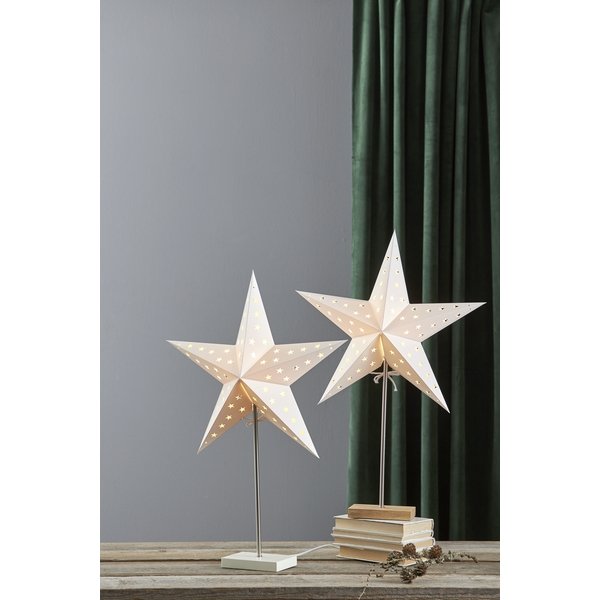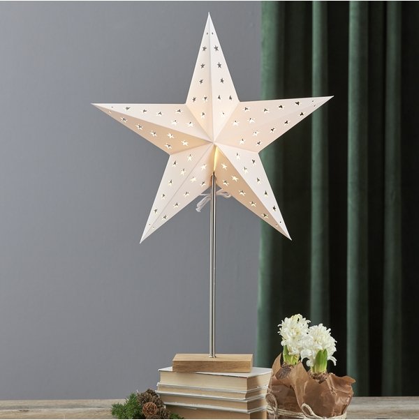 Schönes Standleuchten Set, bestehend aus einer Standleuchte mit einem herkömmlichen Schirm und einem Schirm als Stern. Diese können im Handumdrehen ausgetauscht werden. Mit diesem Kombipack können Sie somit auch nach Weihnachten noch Ihr Zuhause verschönern. Die LED Standleuchte hat eine E14-Fassung und kann so mit jedem handelsüblichen E14-Leuchtmittel betrieben werden.