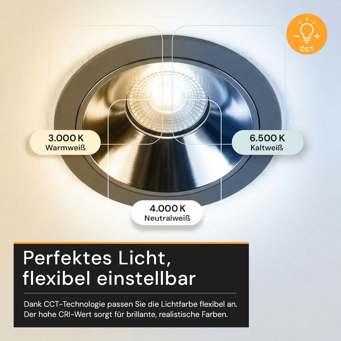 - Farbtreue auf Profi-Niveau: CRI>90 stellt natürliche Farben und eine hochwertige Lichtqualität sicher und ohne Blendung.