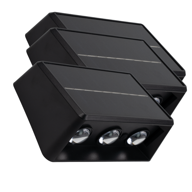 LUXULA Solar LED-Wandleuchte Up/Down, 2-flammig oder 3-flammig, CCT, IP54 – Außenleuchte mit Akku und Solarpanel in Schwarz