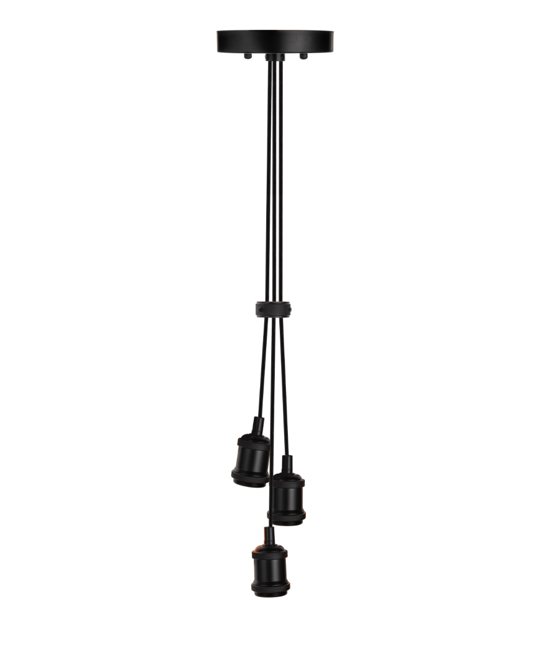 Hängeleuchte 3-Fach, E27, AVOCADO, Metall, schwarz, Textilkabel schwarz, exkl. Leuchtmittel