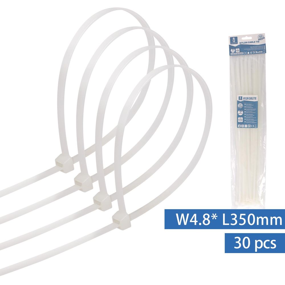 Kabelbinder, 30 Stk., 4,8 x 350 mm, weiß