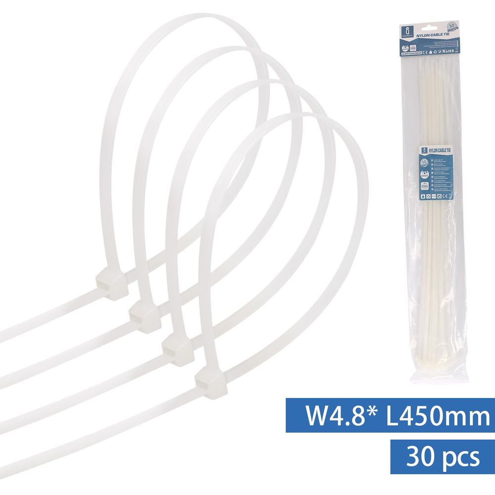 Kabelbinder, 30 Stk., 4,8 x 450 mm, weiß