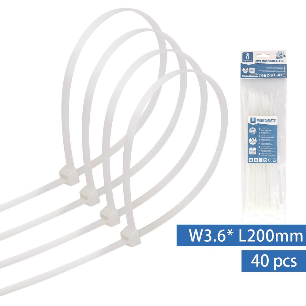 Kabelbinder, 40 Stk., 3,6 x 200 mm, weiß