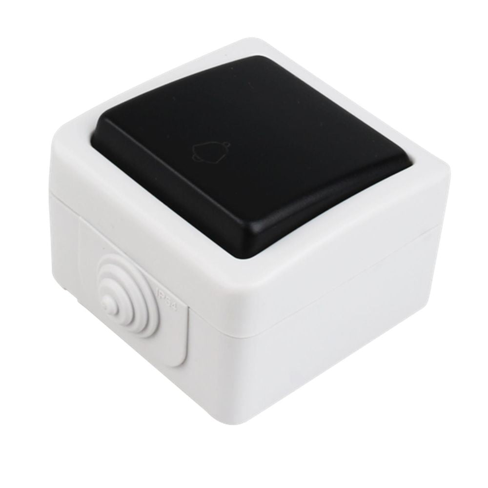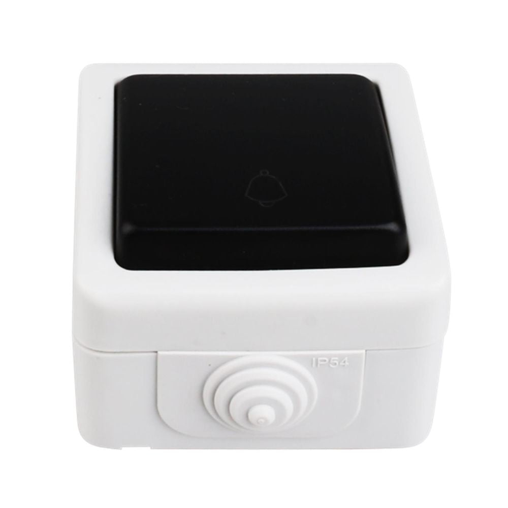 Klingeltaster mit einem Nennstrom von 10 A und einer Nennspannung von 250 V in der Farbe weiß und schwarz.