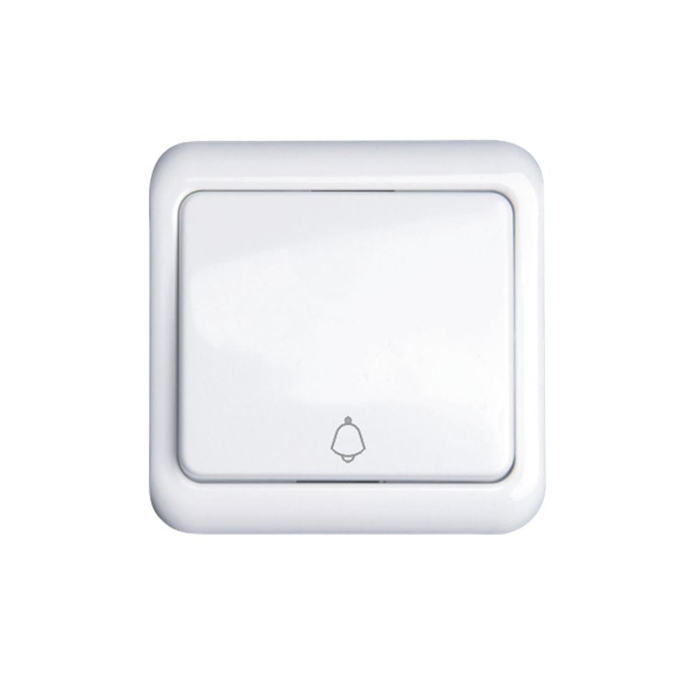 Klingeltaster mit einem Nennstrom von 10 A und einer Nennspannung von 250 V in der Farbe weiß.