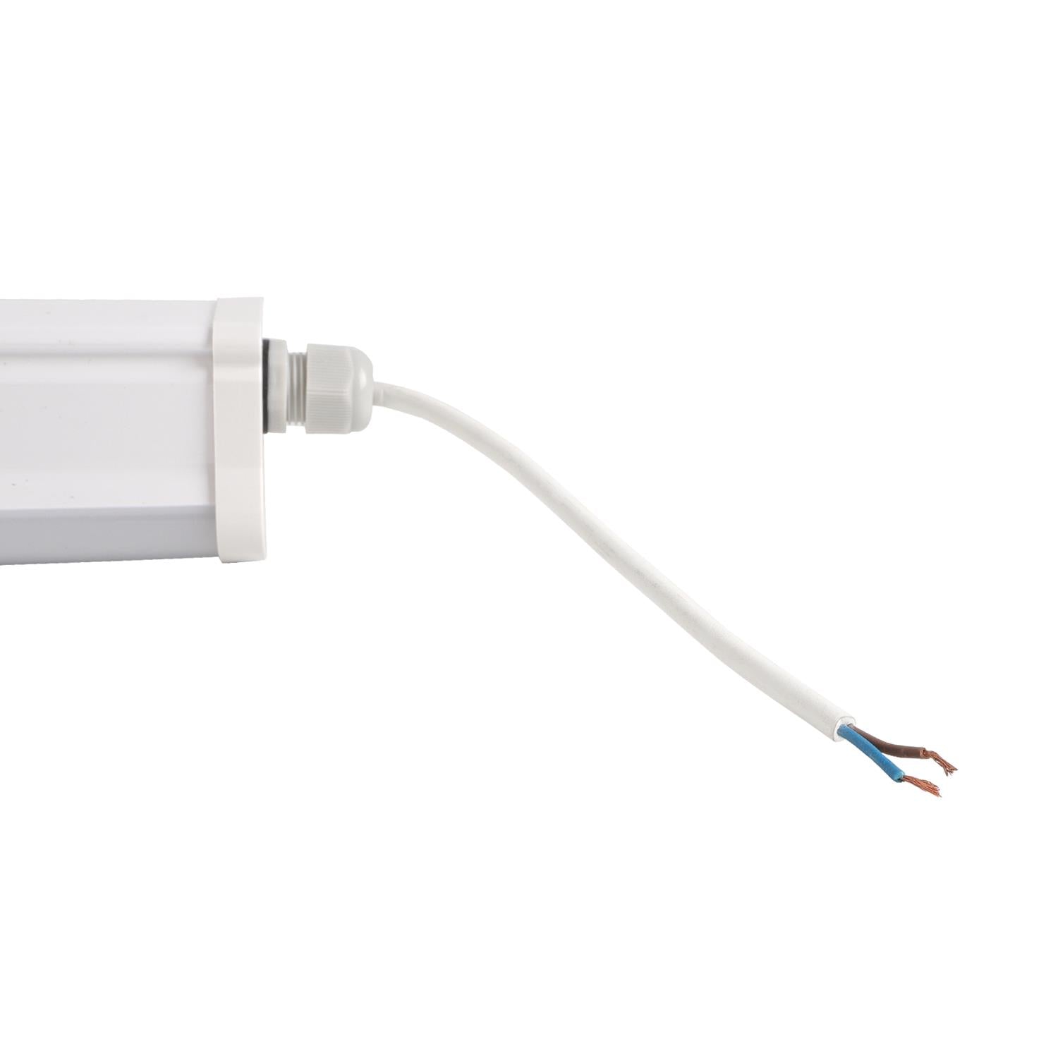 LED Feuchtraumleuchte mit einer Leistung von 20 Watt, einem Lichtstrom von 2000 Lumen in der Lichtfarbe kaltweiß (6500 K). Die 60 cm lange Unterbauleuchte ist nach IP65 geschützt und eignet sich somit ideal als Feuchtraumleuchte für Ihren Keller, Ihre Waschküche, Lagerräume und für den Outdoorbereich.