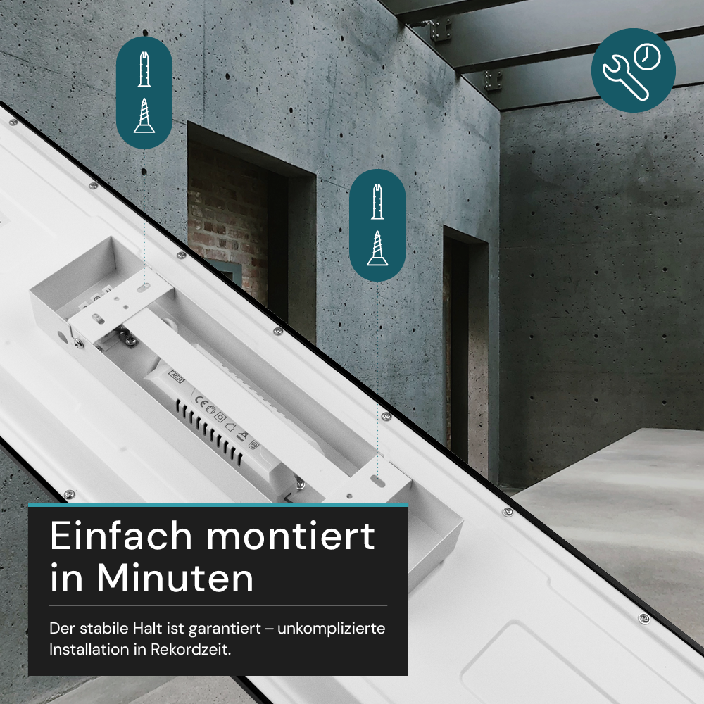 - Starker Lichtstrom: 4400 Lumen liefern eine klare, gleichmäßige Ausleuchtung in schmalen, länglichen Räumen und über Arbeitsflächen.
