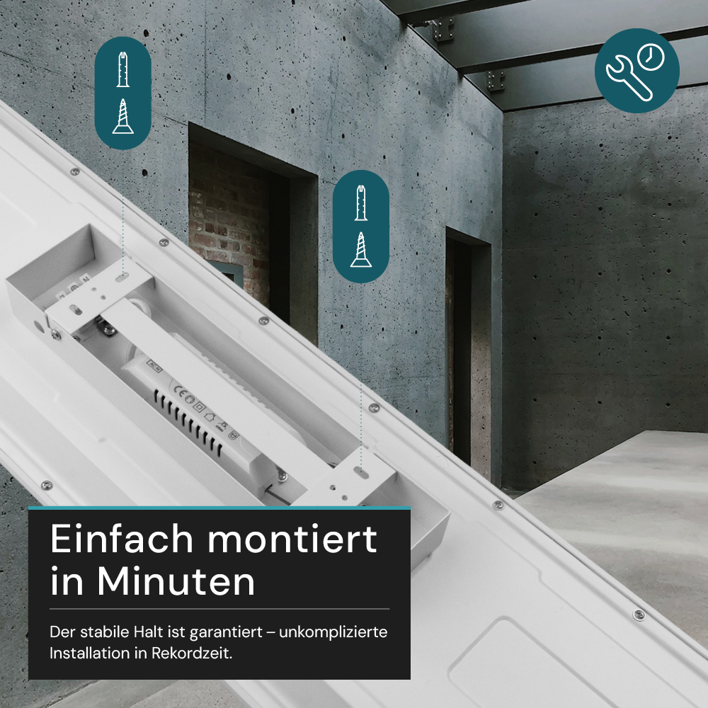 - Starker Lichtstrom: 4400 Lumen liefern eine klare, gleichmäßige Ausleuchtung in schmalen, länglichen Räumen und über Arbeitsflächen.
