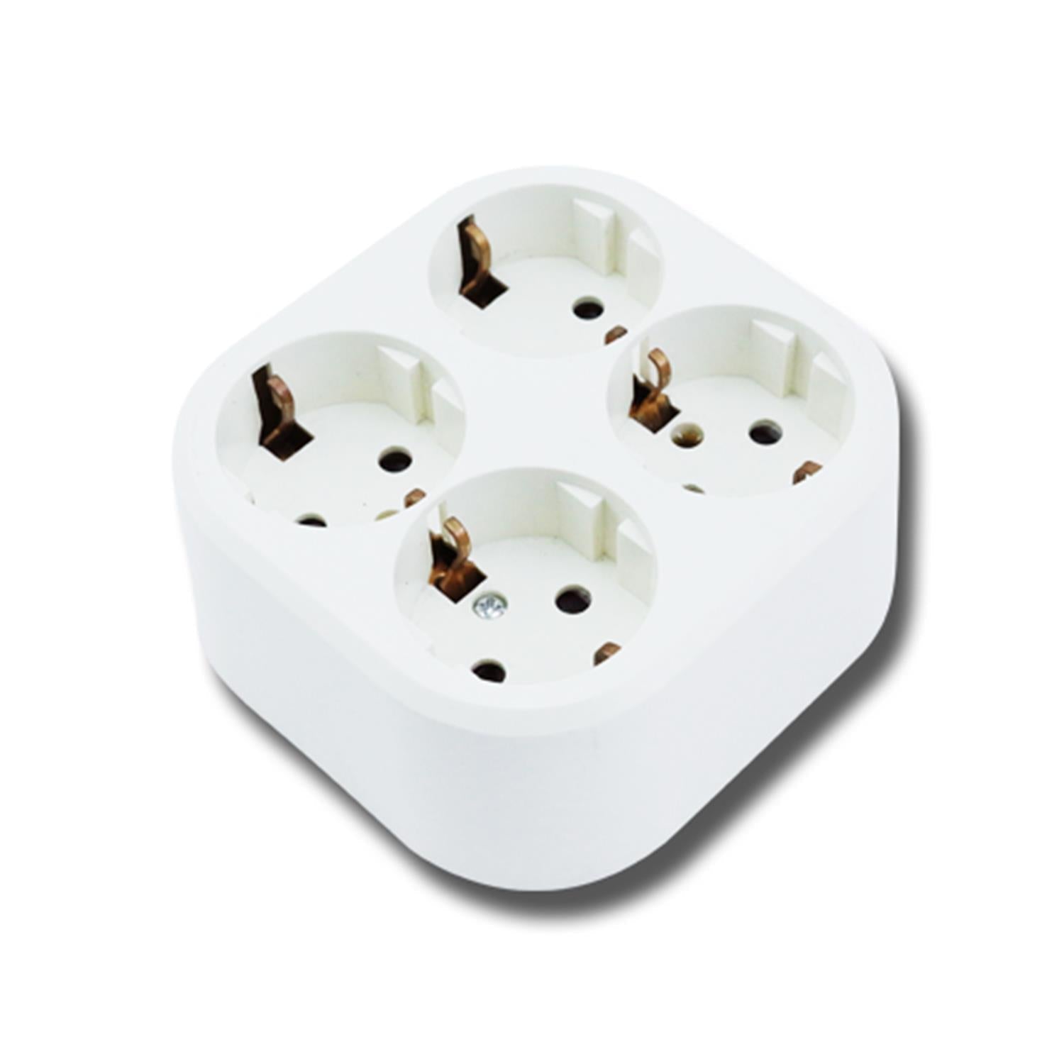 Vierfach-Schutzkontakt-Steckdose, 16 A, 250 V, weiß, AP